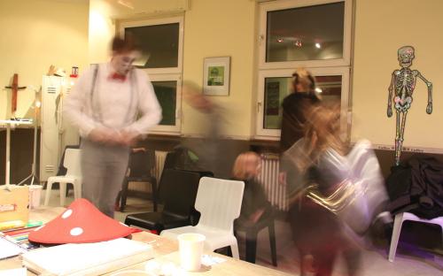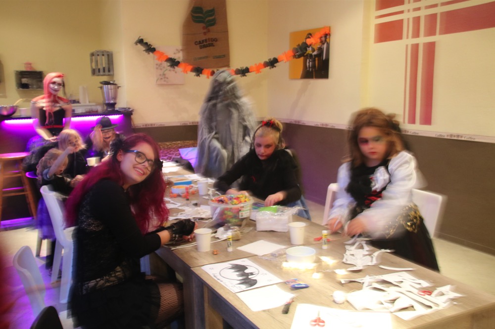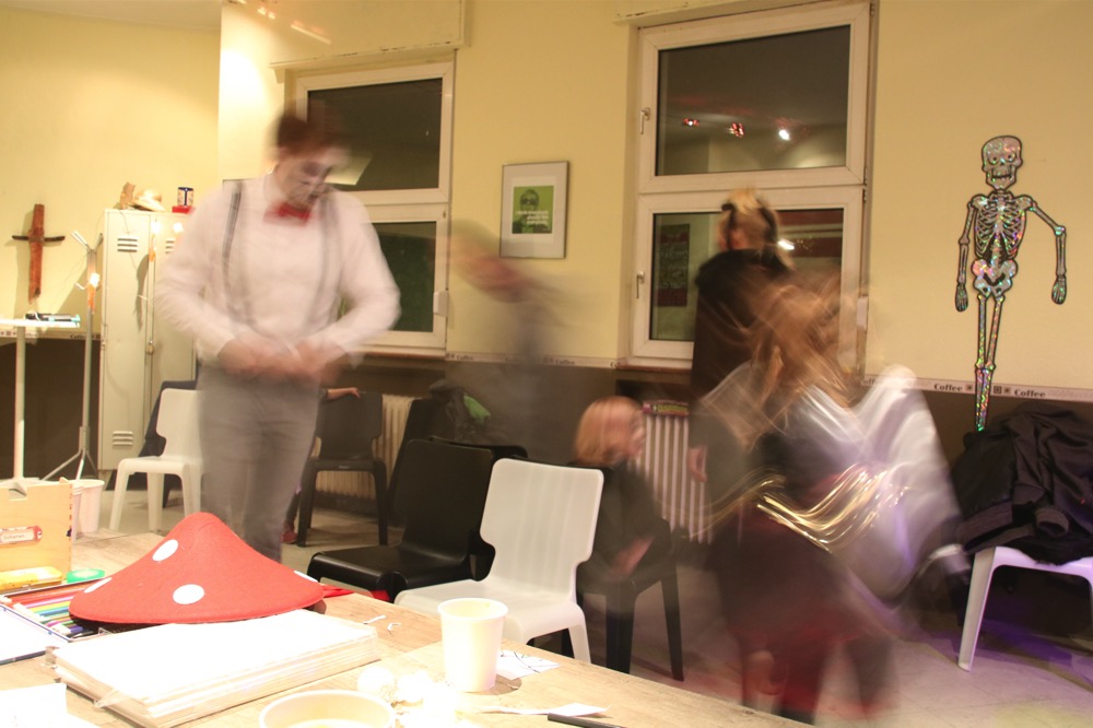 Zweieinhalb Stunden lang wurden Skelette und Geister gebastelt und Bilder gemalt. Natürlich wurde auch das Tanzbein geschwungen und die Kinder zeigten ihre Fähigkeiten bei verschiedenen Tanzspielen. Dabei wurden die Besten für ihren Tanz und ihr Kostüm prämiert. Auch eine schaurig lustige Partie Billard wurde gespielt.