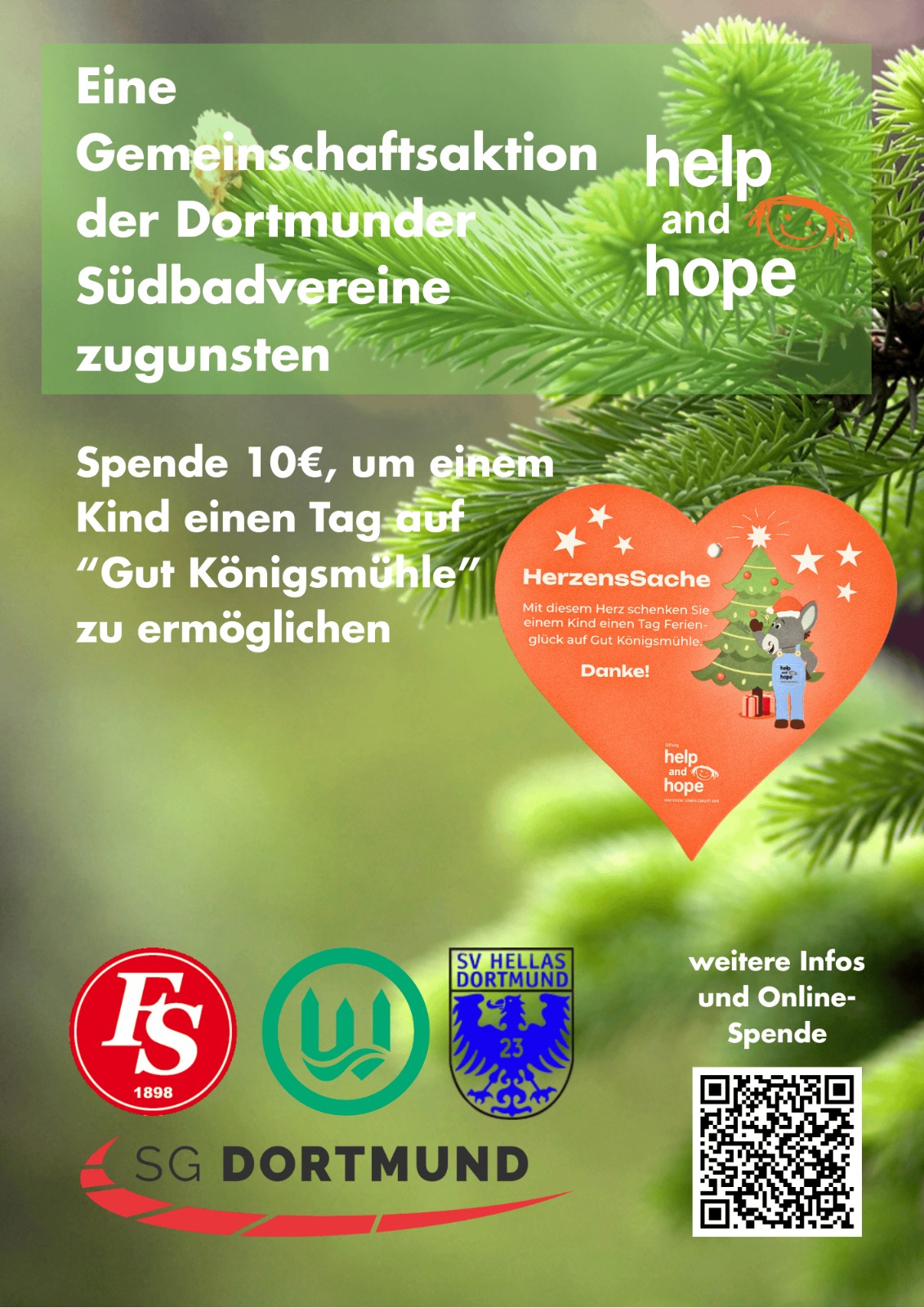 Die Dortmunder Südbadvereine – FS1898, SV Hellas, SV Westfalen und SG Dortmund – starten gemeinsam eine besondere Aktion zugunsten des Projektes „Herzenssache“ der help and hope Stiftung.