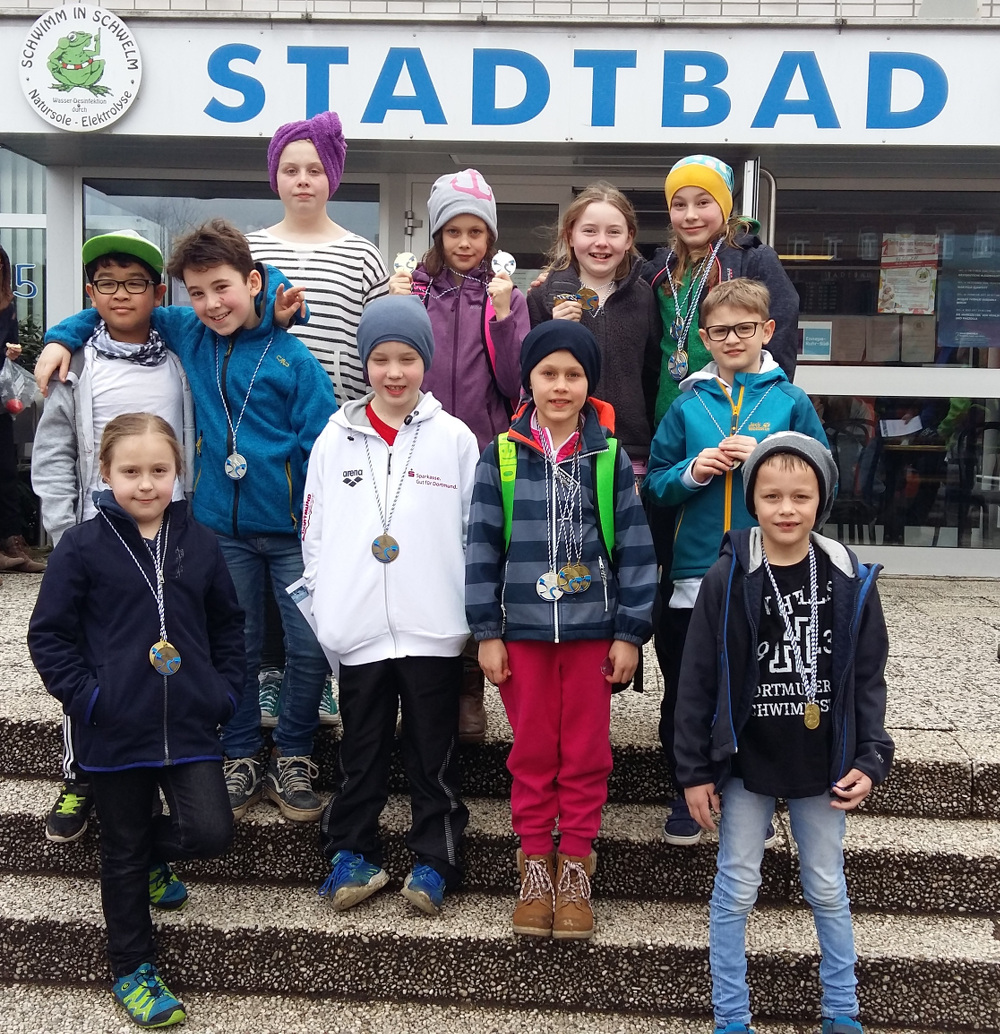 Am Sonntag, den 19.03.2107 ging es mit 11 Schwimmern zum Frühjahrsschwimmfest nach Schwelm. Da es bei diesem Wettkampf auch einen kindgerechten Teil gab, durften auch unser jüngste Schwimmer Paul (2011) ran. Paul startet drei Mal im ersten Teil des Wettkampfes und belegte jeweils immer den ersten Platz.
